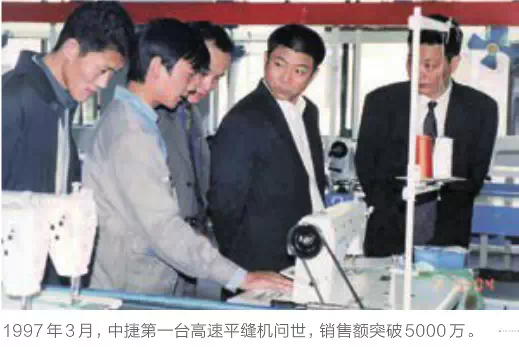 1997 1997年3月,中捷第一臺(tái)高速平縫機(jī)問(wèn)世,銷售額突破5000萬(wàn)。