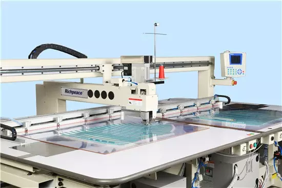 “零等待”縫紉機的結構特點 1、采用懸臂和橋式混合結構,既穩定又美觀; 2、針和梭可以在X向同步移動,伺服絲杠驅動; 3、A/B框獨立作業,高效安全; 4、A/B框花樣任意設計,無需相同,且可控內花型循環工作; 5、縫制面積A/B框獨立作業900X600,AB框合體作業2000X600;
