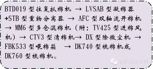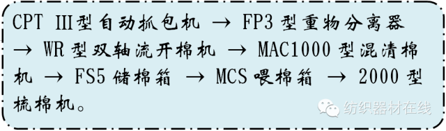 克羅斯羅爾公司加工低含雜原棉的清梳聯流程為: