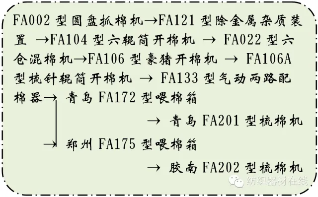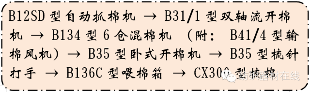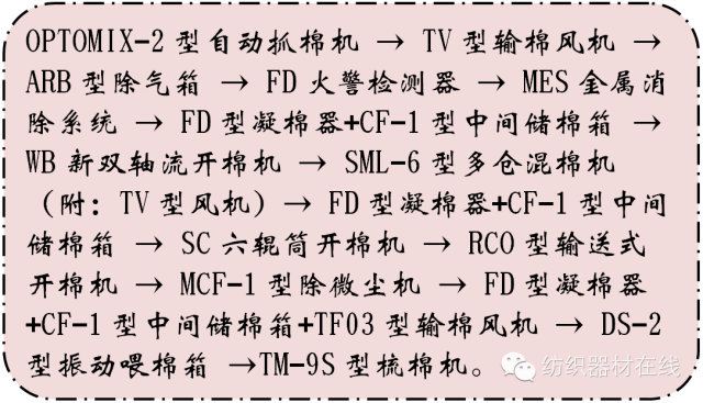 同一時期,1994年青島紡機和金壇紡機合作在德州棉紡廠組建長流程清梳聯生產線,其流程配置為: