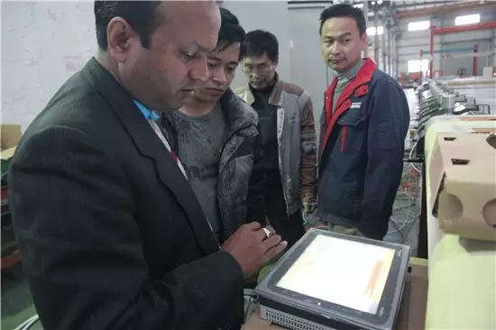 今年,聚旺印染機(jī)械有限公司要參加8個(gè)海外展,許佳銘總經(jīng)理很忙,以至于在晚餐時(shí),他還在埋頭用手機(jī)與國外客戶溝通。聚旺的海外市場很旺,一波波的國際客戶來參觀,就在我們抵達(dá)的當(dāng)天,剛好有孟加拉客戶在驗(yàn)機(jī)。
